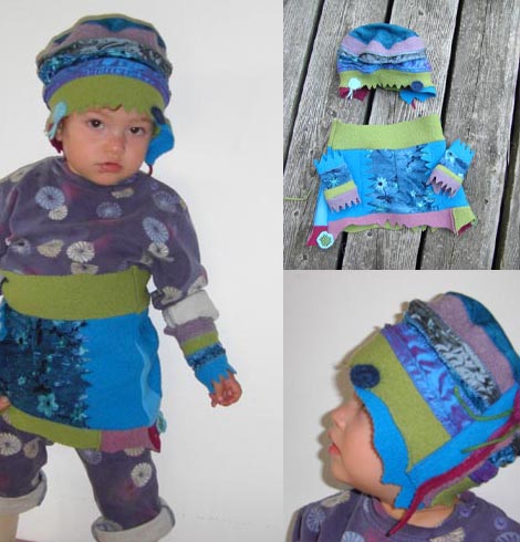 Materialien: Wolle, Seide, Fliess, Angora und Applikationen aus alten indischen Stoffen.